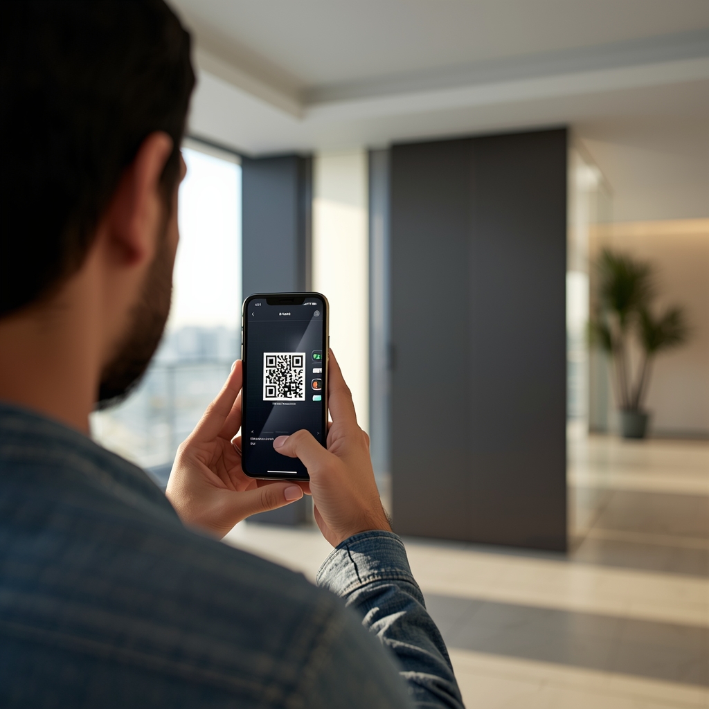 O morador escaneia o QR Code do condomínio com o WhatsApp, informando nome e unidade. Ao escanear, o morador consente em receber mensagens do assistente. Pode cancelar a qualquer momento enviando 'SAIR'.